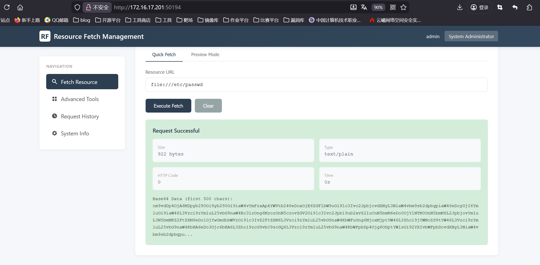 <div class="main-content"> <div class="content-section active" id="fetch-section"> <div class="panel"> <div class="panel-header"><div class="panel-title">Resource Fetcher</div></div> <div class="tabs"> <button class="tab-btn active" data-tab="quick">Quick Fetch</button> <button class="tab-btn" data-tab="preview">Preview Mode</button> </div> <div id="quick-tab" class="tab-content" style="display: block;"> <div class="form-group"> <label class="form-label">Resource URL</label> <input type="text" class="form-input" id="fetchUrl" placeholder="http://example.com/resource"> </div> <div class="button-group"> <button class="btn btn-primary" onclick="doFetch()">Execute Fetch</button> <button class="btn btn-secondary" onclick="clearResult('fetch')">Clear</button> </div> <div id="fetchResult" class="result-panel"></div> </div> <div id="preview-tab" class="tab-content" style="display: none;"> <div class="form-group"> <label class="form-label">Resource URL</label> <input type="text" class="form-input" id="previewUrl" placeholder="http://example.com/image.png"> </div> <div class="button-group"> <button class="btn btn-primary" onclick="doPreview()">Preview Resource</button> <button class="btn btn-secondary" onclick="clearResult('preview')">Clear</button> </div> <div id="previewResult" class="result-panel"></div> </div> </div> </div>